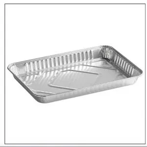 For this recipe I prefer to use disposable, aluminum 1/4 cookie sheet pans. They are aprox. 13″ x 9″ x 1 3/4″ – I purchase them at my local supermarket. I found them in bulk on the Webstaurant website for a visual:
