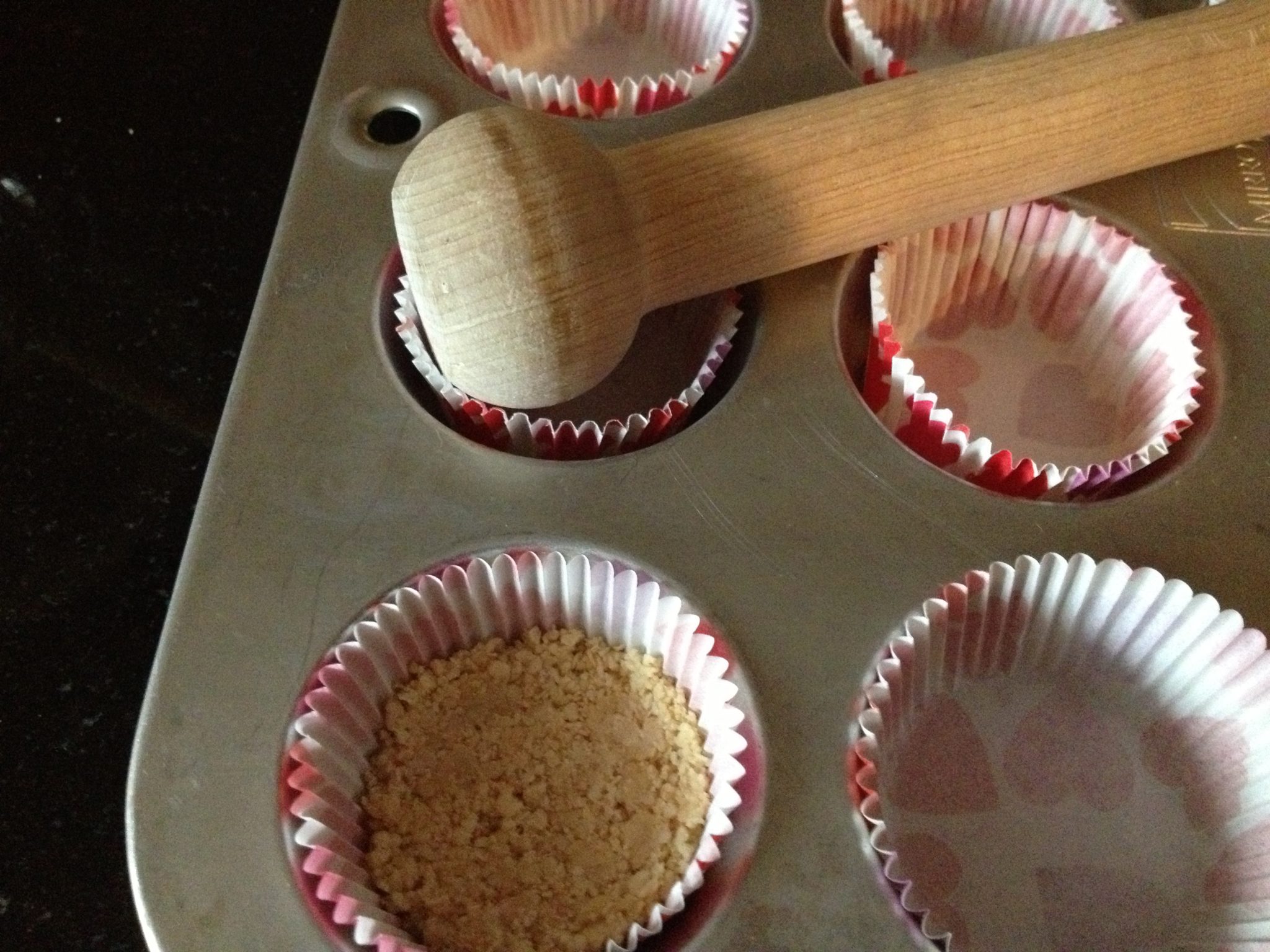 - press aprox. 1 teaspoon of crumbs into the muffin cups (pack tightly)