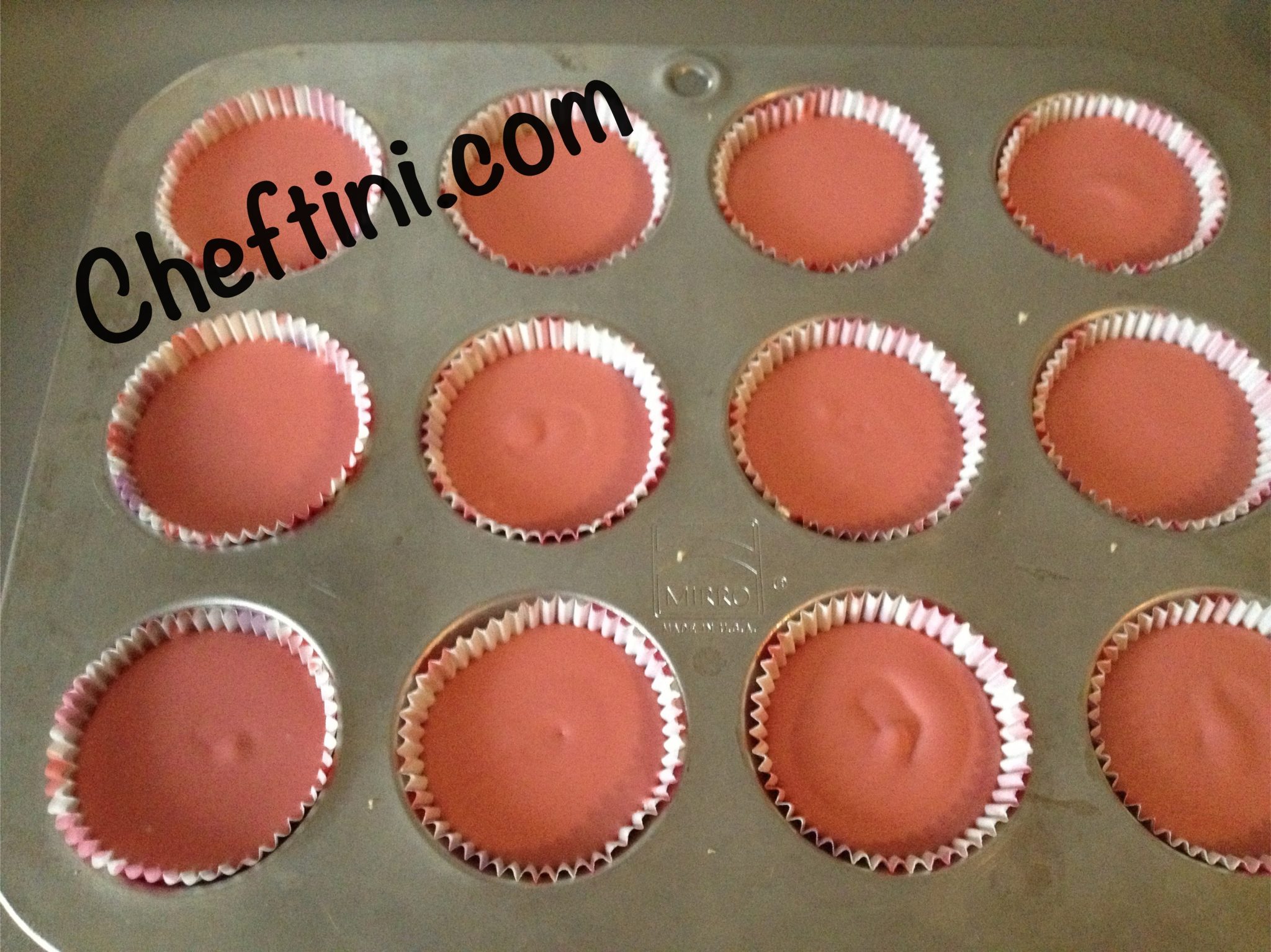 - I layed out my mini muffin cups into a mini muffin tray and pressed the cookie crumbs into the cups – they should be tightly packed and then placed in the refrigerator for about an hour…
