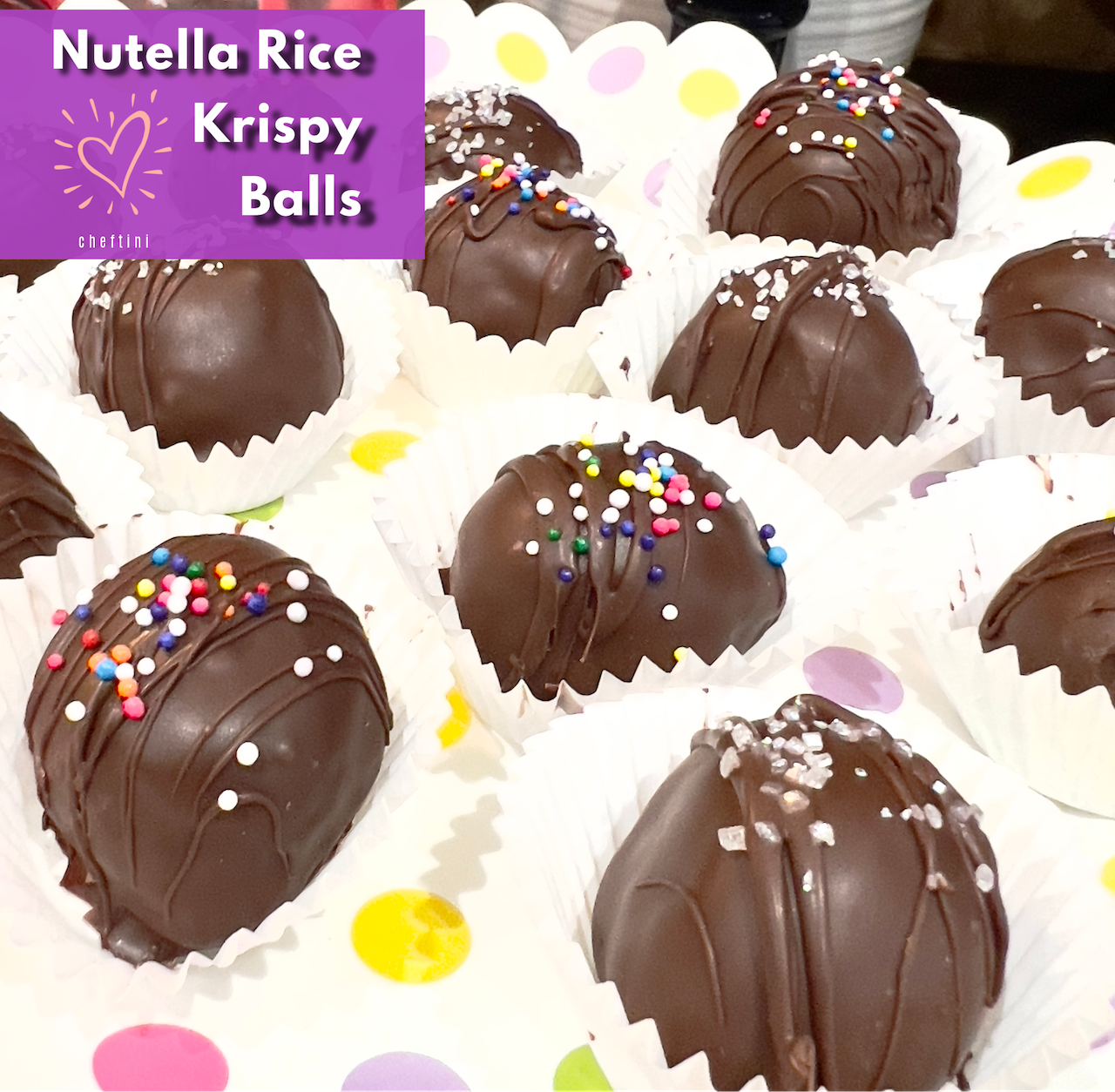 These tasty Nutella Krispy Crunch Balls are made with Rice Krispies, butter, and confectioners sugar. This quick tasty treat is sure to satisfy any sweet tooth.