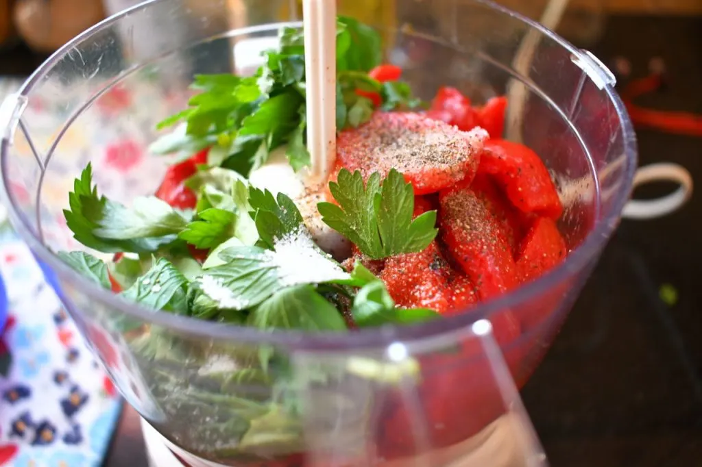 The original version of this recipe from 2018 was a simple, vibrant blend of roasted red peppers, olive oil, white balsamic, and fresh herbs. But recently, I found a way to take the flavor and texture to a whole new level.