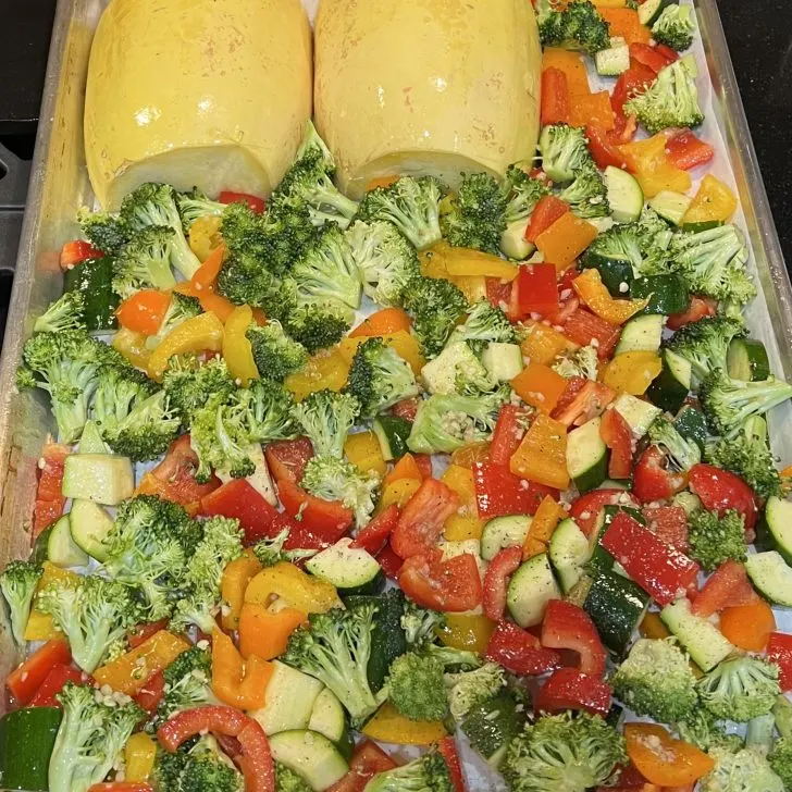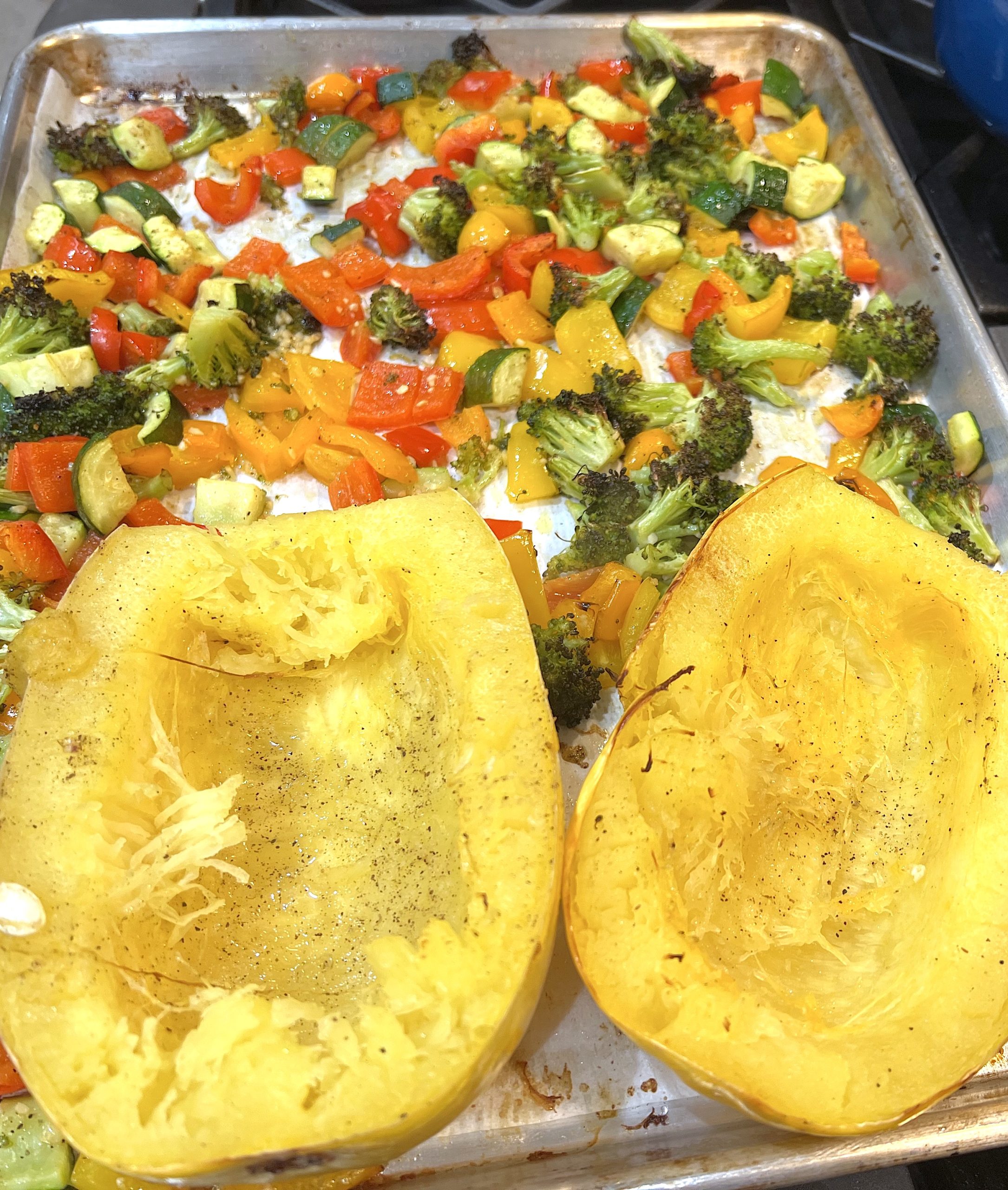 Sheet pan Spaghetti Squash with Roasted Vegetables