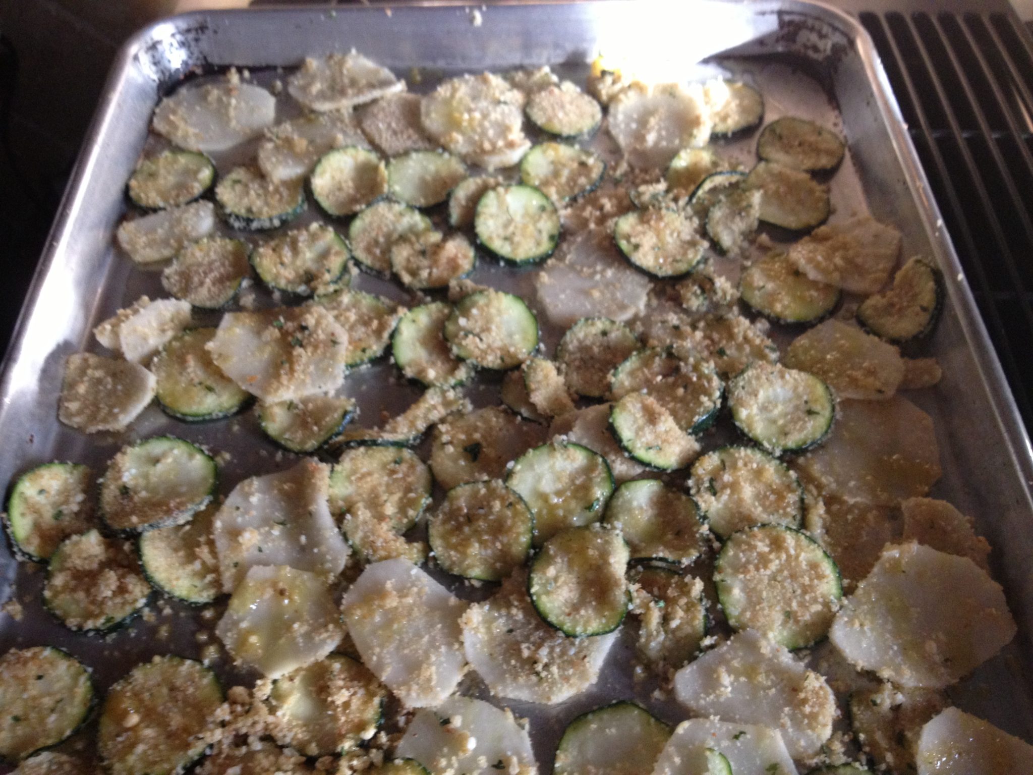 At the end of Summer, when I was young, I remember my Mom making fried Zucchini chips. She would coat them in flour and fry them in oil. I’m pretty sure she added a pinch of salt and cheese. I remember eating them still hot a little oily, a touch salty and cheesy – mmm..so good! I never did a get a recipe for these (like most of Mom’s recipes) but they were a family favorite and bring back happy thoughts of summer as a kid.